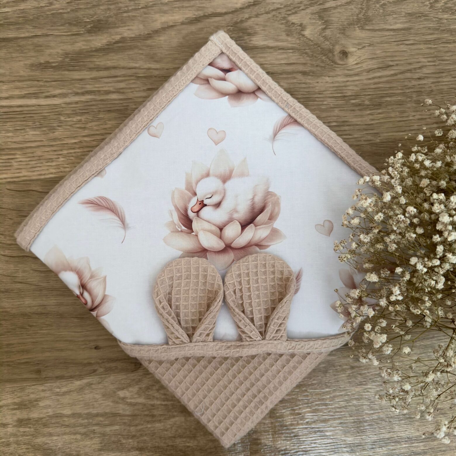 A wyjątkowa struktura przypominająca wyglądem wafelek sprawi, że maluszek nie tylko będzie dokładnie wysuszony, ale również zachwyci on wszystkich swoim uroczym odzieniem :).