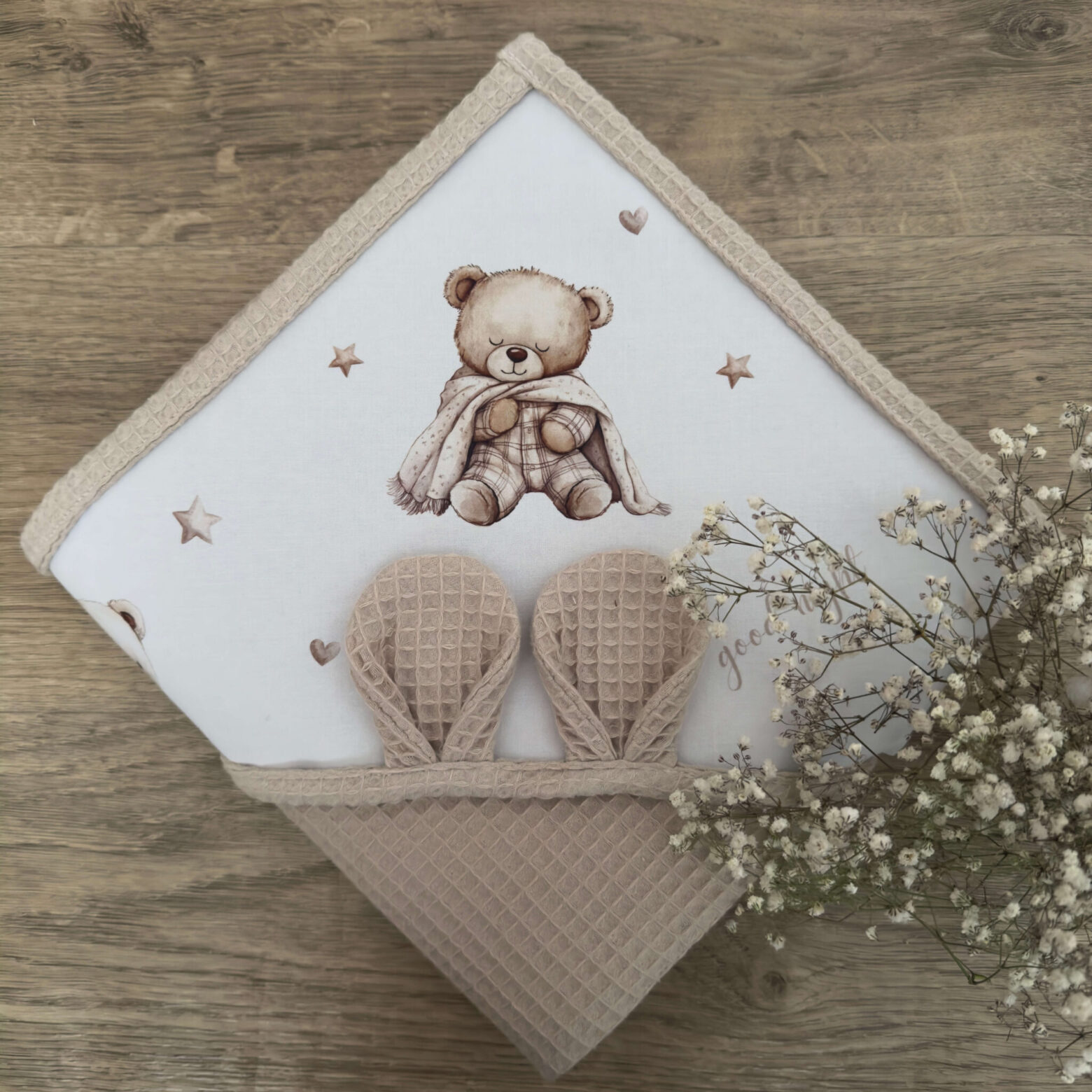 Ręcznik niemowlęcy ŚPIĄCE MISIE + WAFEL beż