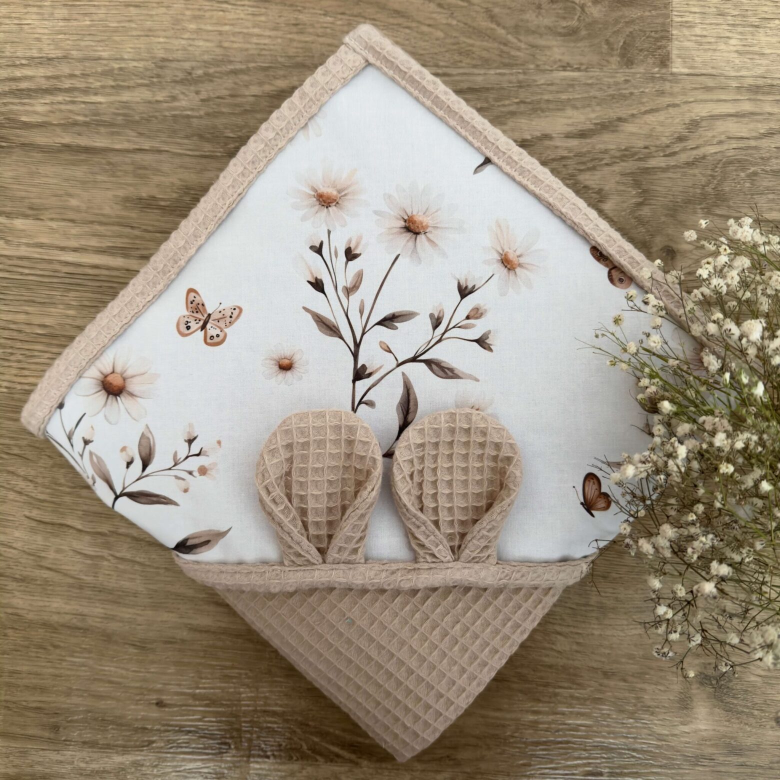 Ręcznik niemowlęcy STOKROTKI + WAFEL beż Darmowa dostawa od 500 zł! Ręcznik niemowlęcy STOKROTKI + WAFEL beż