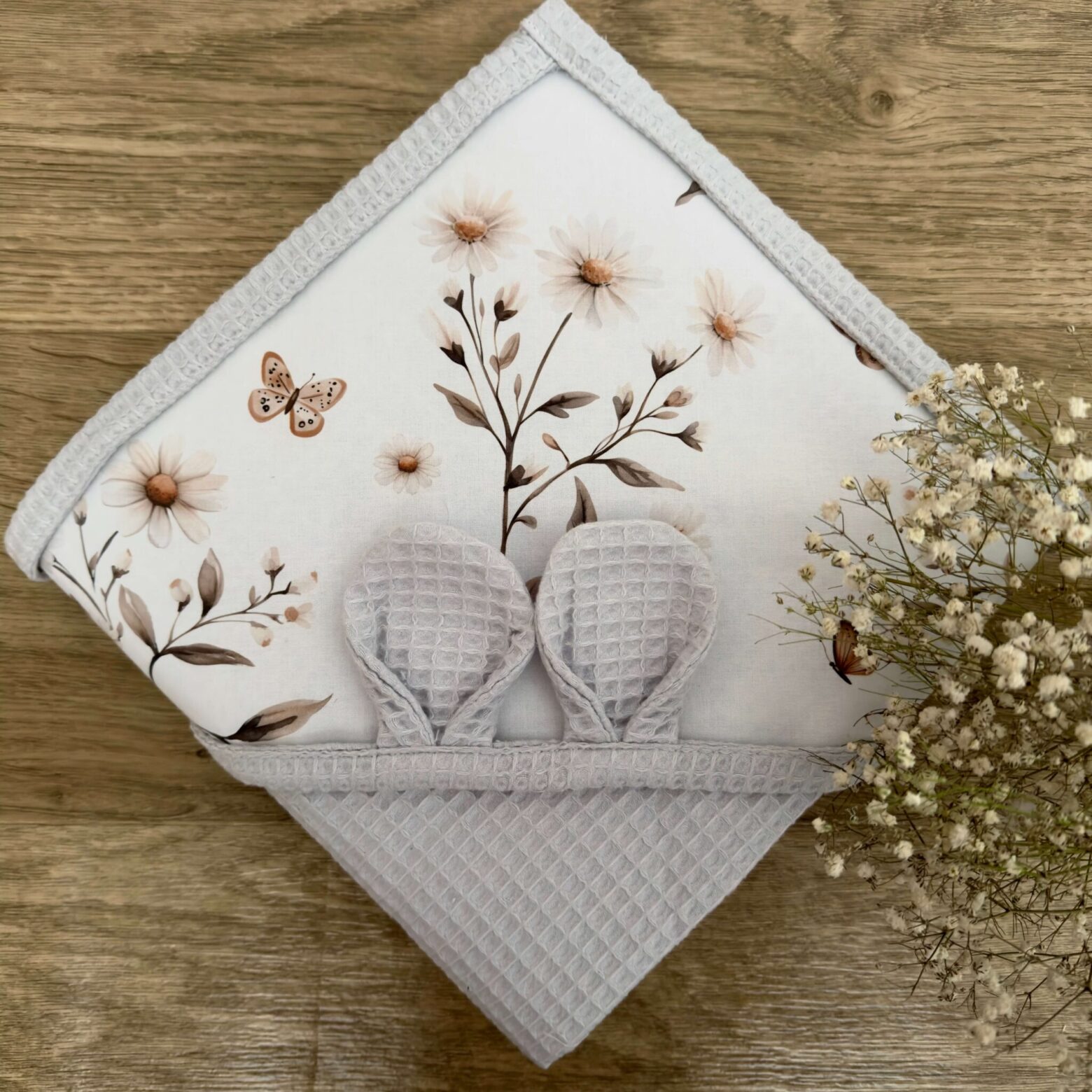 A wyjątkowa struktura przypominająca wyglądem wafelek sprawi, że maluszek nie tylko będzie dokładnie wysuszony, ale również zachwyci on wszystkich swoim uroczym odzieniem :).