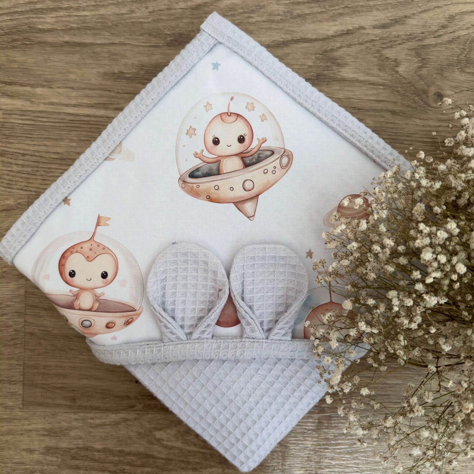 A wyjątkowa struktura przypominająca wyglądem wafelek sprawi, że maluszek nie tylko będzie dokładnie wysuszony, ale również zachwyci on wszystkich swoim uroczym odzieniem :).