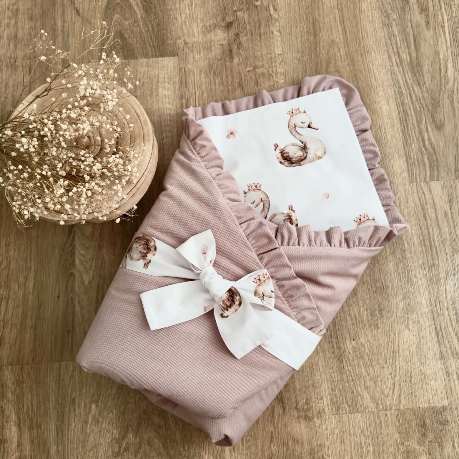 Kokon niemowlęcy z kolekcji ŁABĘDZIE + VELVET brudny róż