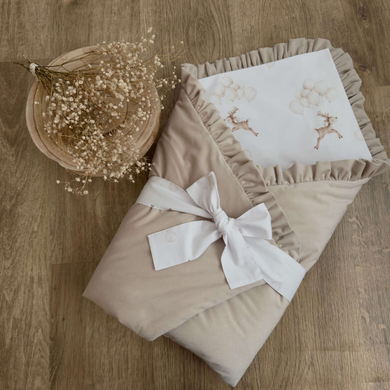 Becik niemowlęcy z kolekcji SARENKA Z BALONEM + VELVET beż