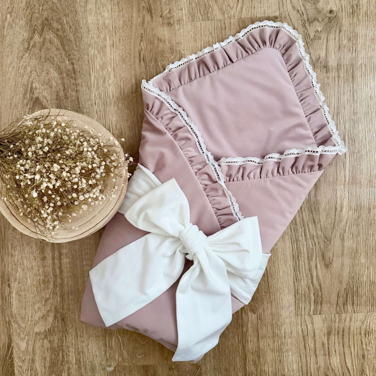 Kocyk + poduszka . Kolekcja SWEET BABY + VELVET brudny róż
