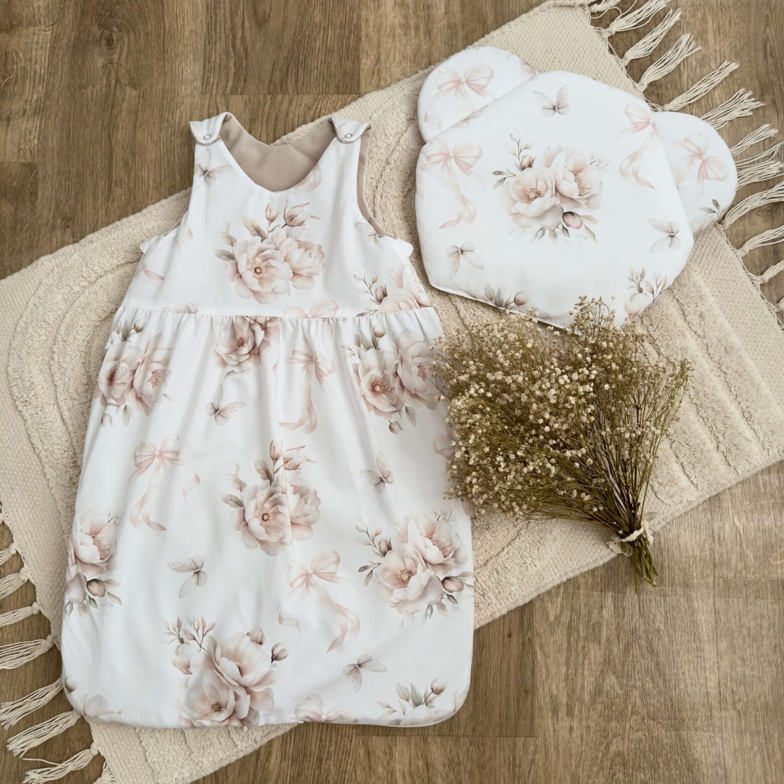 Napisz pierwszą opinię o „Śpiworek do spania kolekcja ANEMONY Z KOKARDĄ + VELVET beż + poduszka GRATIS”