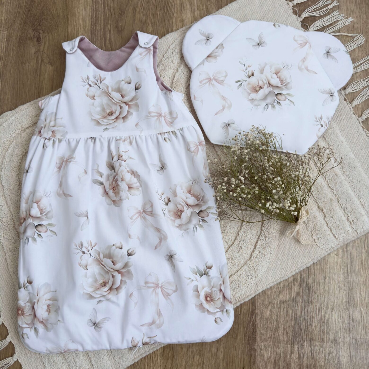 Napisz pierwszą opinię o „Śpiworek do spania kolekcja ANEMONY Z KOKARDKĄ + VELVET brudny róż + poduszka GRATIS”
