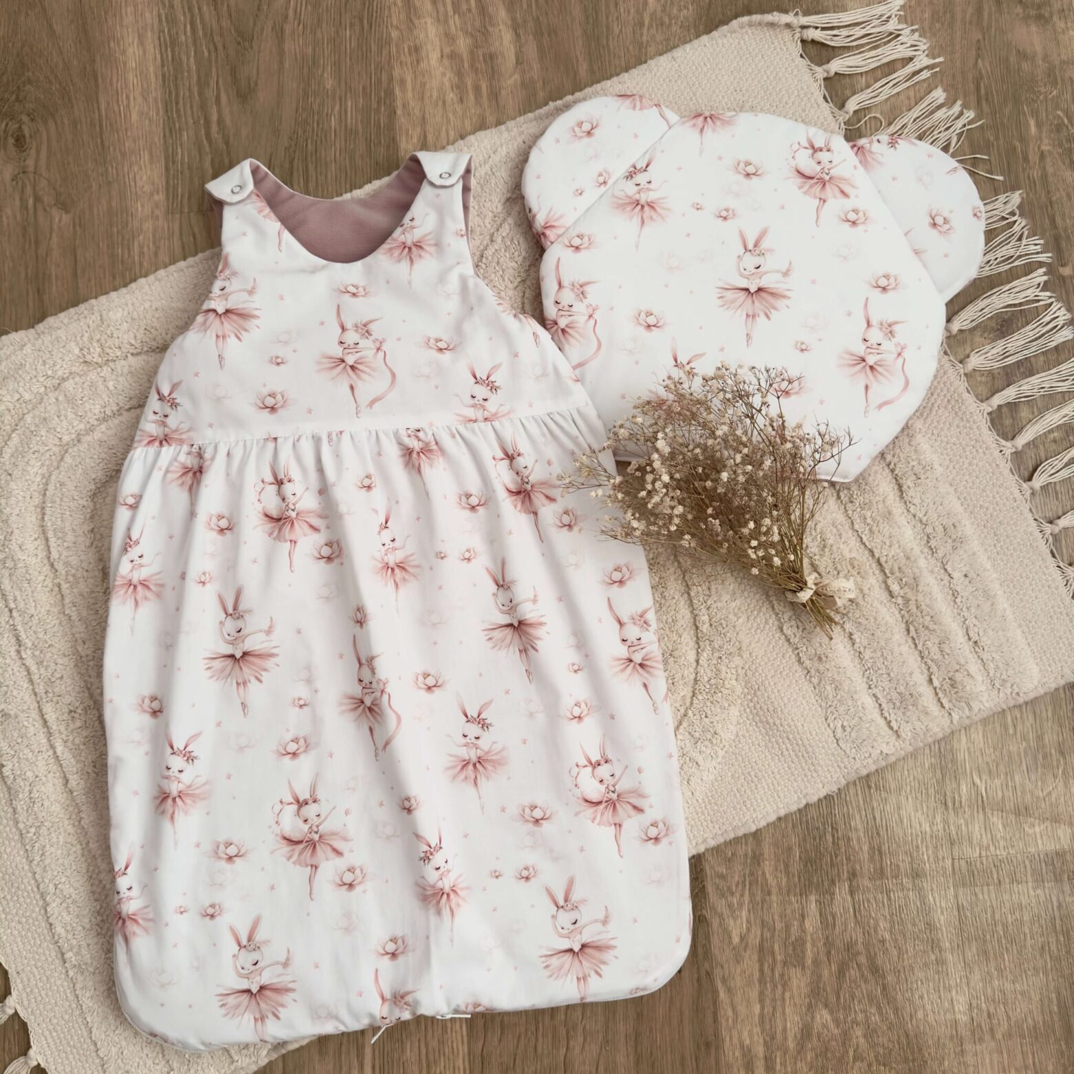 Kołderka + poduszka z wypełnieniem. Kolekcja BALETNICA + VELVET brudny róż