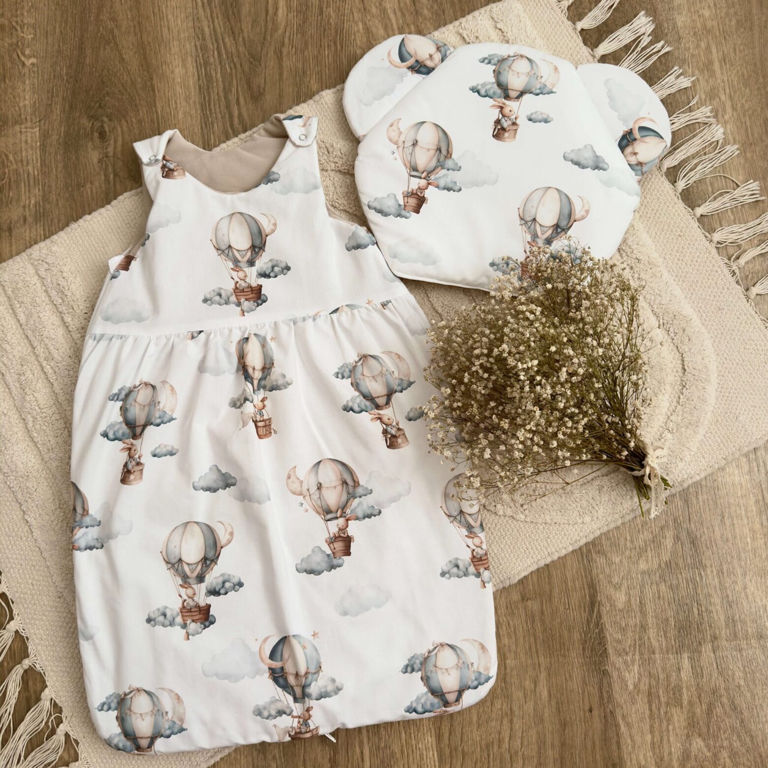 Kołderka + poduszka z wypełnieniem. Kolekcja BALONOWA PRZYGODA + VELVET beż