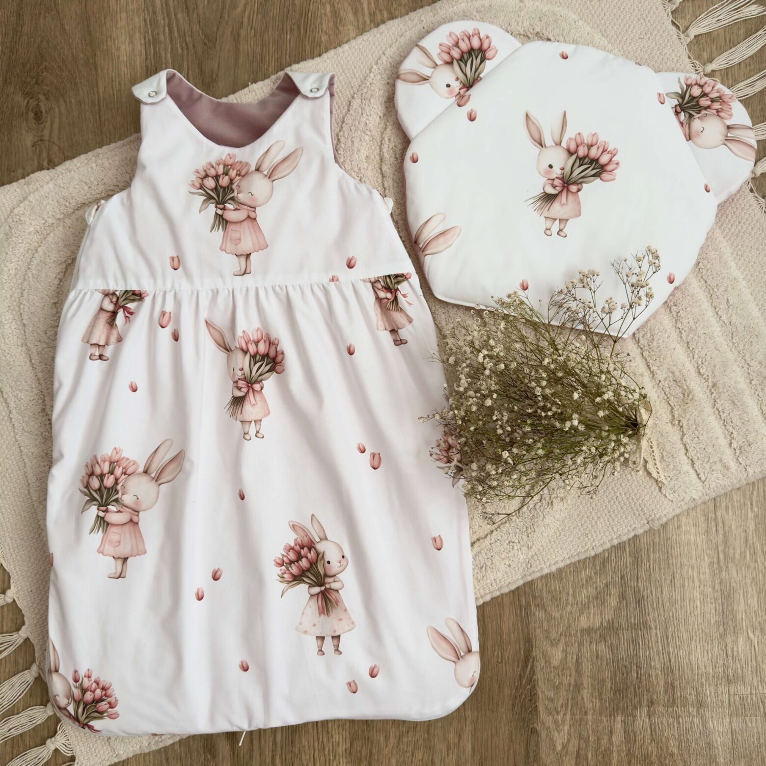 Kokon niemowlęcy z kolekcji KRÓLICZEK Z TULIPANEM + VELVET róż