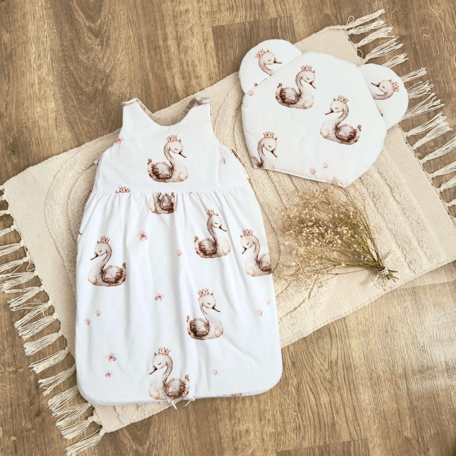 Becik niemowlęcy z kolekcji ŁĄBĘDZIE + VELVET beż