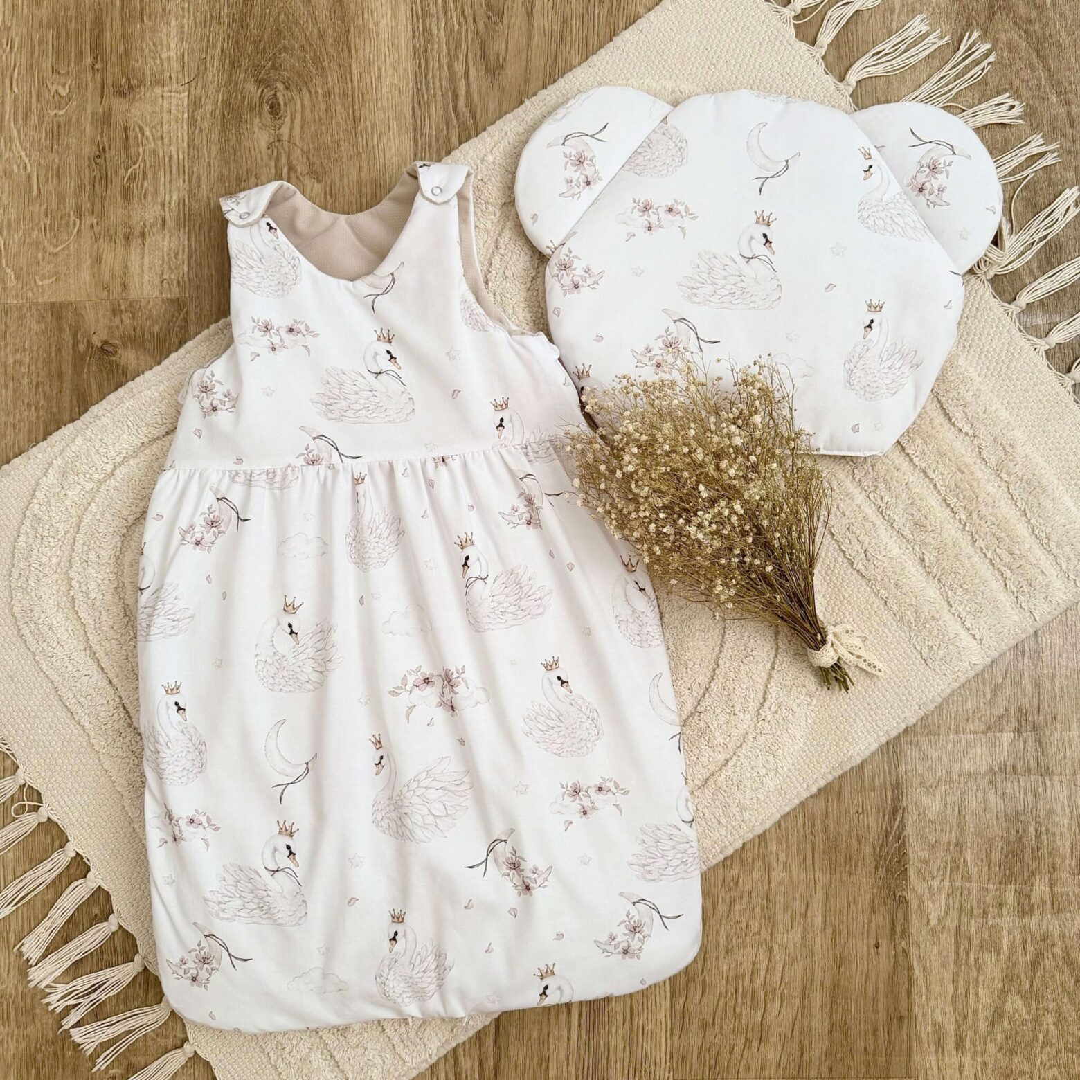 Śpiworek do spania kolekcja ŁABĘDZIE W CHMURACH + VELVET beż + poduszka GRATIS Darmowa dostawa od 500 zł! Śpiworek do spania kolekcja ŁABĘDZIE W CHMURACH + VELVET beż + poduszka GRATIS