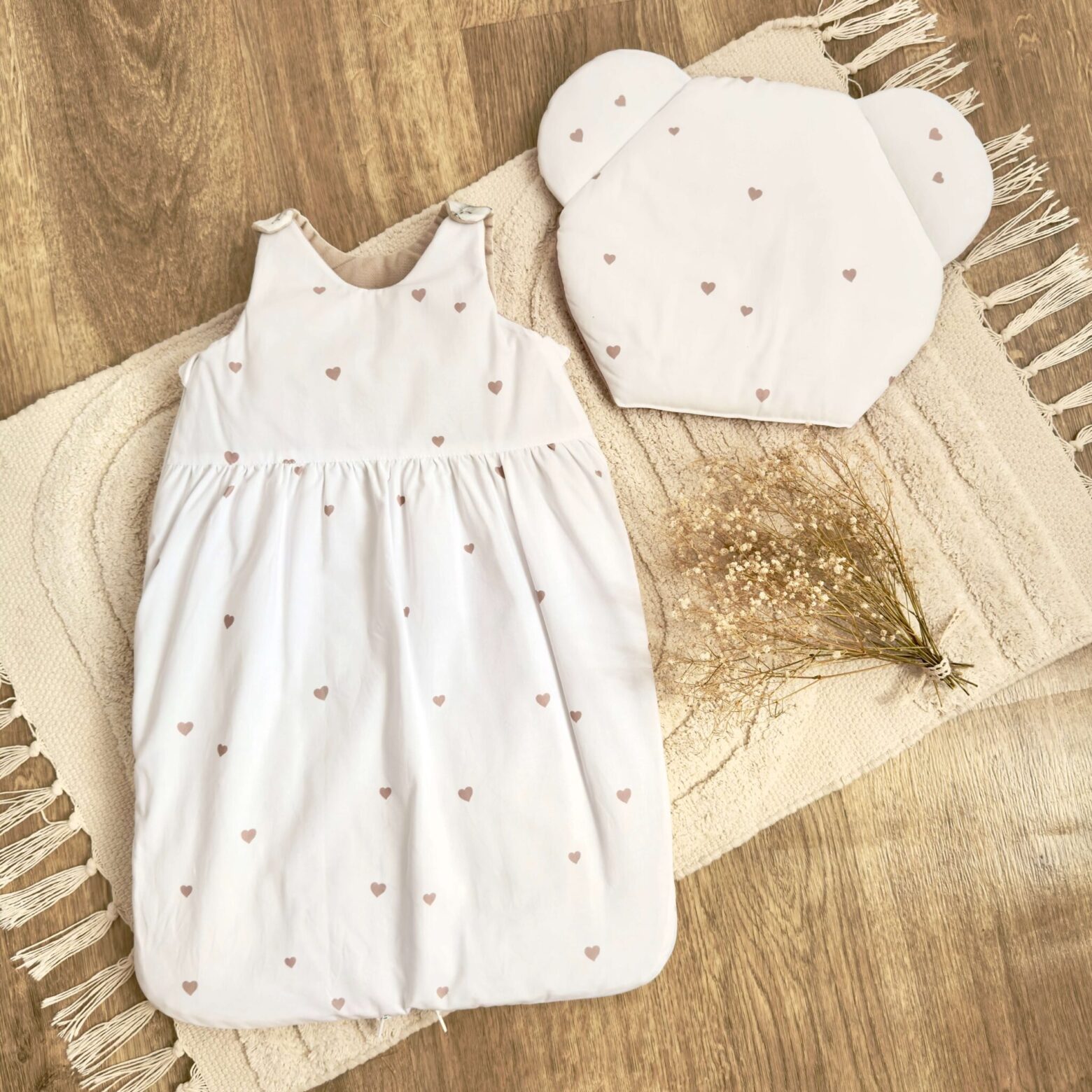 Kołderka + poduszka z wypełnieniem. Kolekcja SERDUSZKA beż + VELVET beż