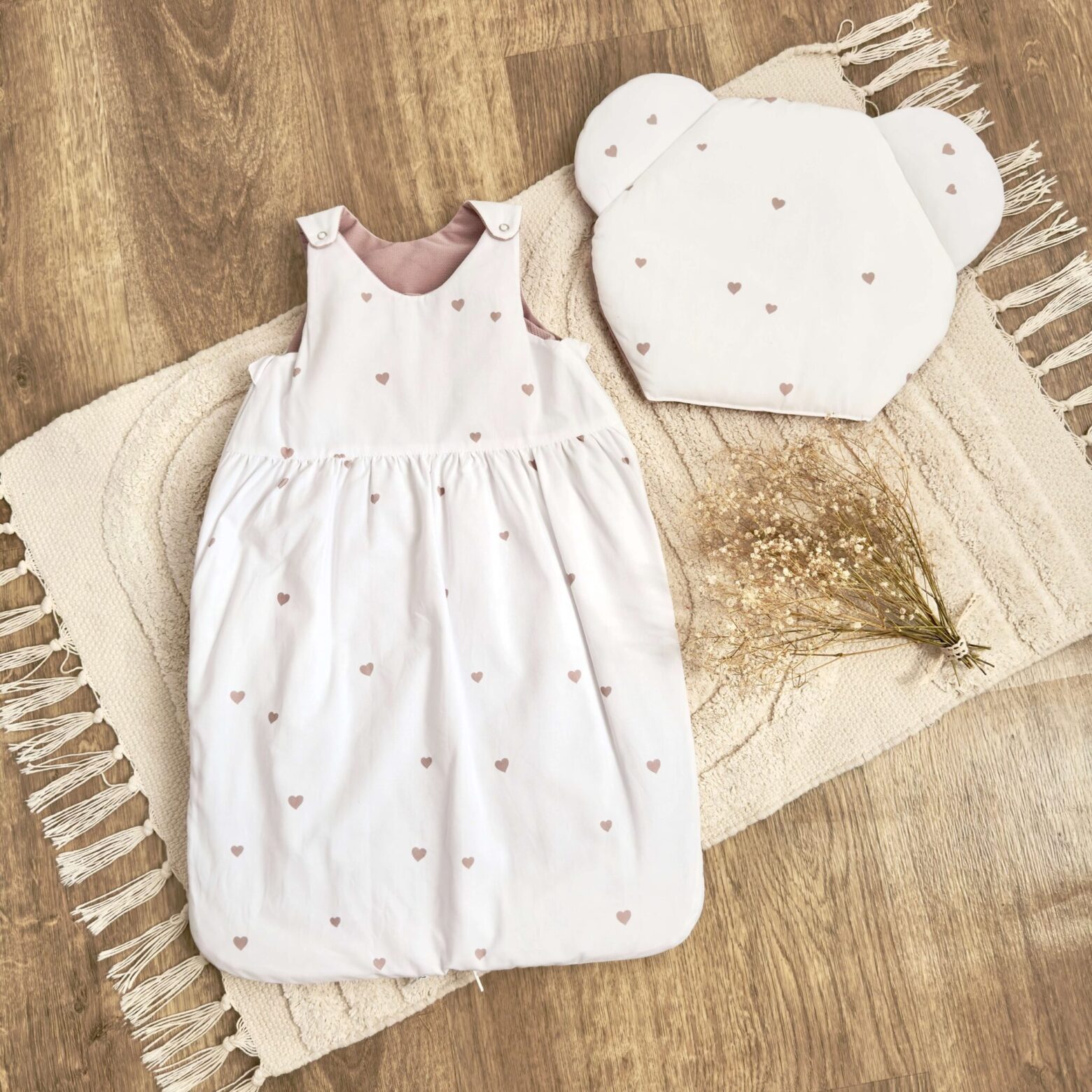 Kołderka + poduszka z wypełnieniem. Kolekcja SERDUSZKA + VELVET brudny róż